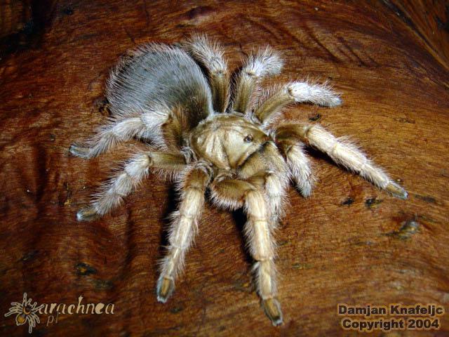 Ptaszniki z tego gatunku osiągają ok. 6 – 7 cm samego ciała, rozpiętość odnóży osiąga do 15-16 cm Dość jednolicie ubarwiony pająk. Karapaks jest czymś pomiędzy beżem a jasnym brązem. Uda pająka są nieco ciemniejsze – brązowe. Odwłok jest koloru ciemnego beżu i ciemnego, dojrzałego brązu. Dalsze segmenty odnóży są jasnoszare.
