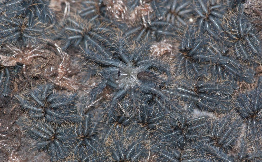 Rozmnażanie tego gatunku nie należy do najprostszych. Samica często przejawia agresje względem samca, jego konsumpcja może być traktowana jako dobry omen i zwiększenie szansy na kokon. Odwzorowanie warunków naturalnych jest najważniejszym z aspektów rozmnażania ów gatunku. Po kopulacji powinien nastąpić spadek wilgotności (pora sucha), po ok. 2 – 3 miesiącach radykalnie zwiększamy wilgotność co powinno skłonić samice do budowy kokonu. W kokonie znajduje się od 100 do nawet 200 jajeczek.