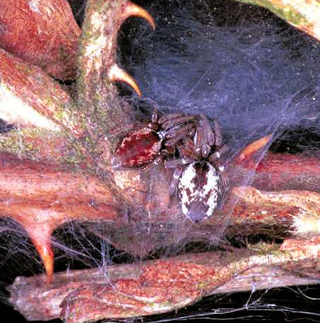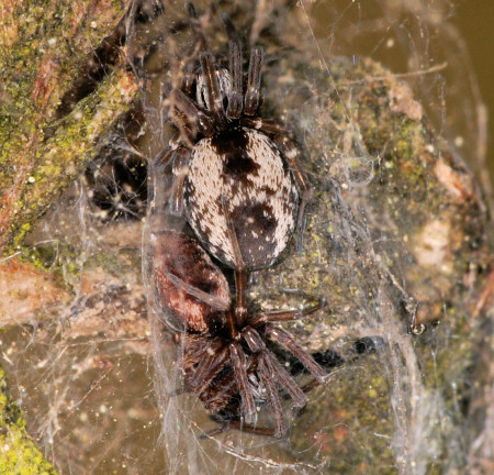 Zakochane pająki. Lewo Nigma walckenaeri, prawo Nigma puella.