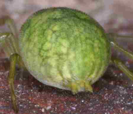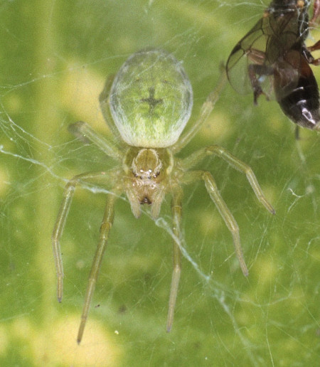 Ten zielony pają chowa się pod prześcieradłem z pajęczyny, preferując duże liście o barwie podobnej do barwy swego ciała. Pająk poluje na muchy dużo większe niż on sam. Jest wielkości 3-5 mm, a swoją pełną wielkość osiągają w miesiącach sierpień – wrzesień. Stara nazwa tego gatunku to Nigma viridissima.