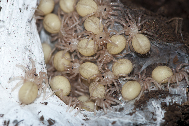 Niełatwe ze względu na trudność skompletowania dorosłej pary. Samica składa kokon po około dwóch miesiącach. Po kolejnych dwóch mamy już młode. Liczba jaj w kokonie 30-90 zależnie od wieku oraz kondycji samicy.