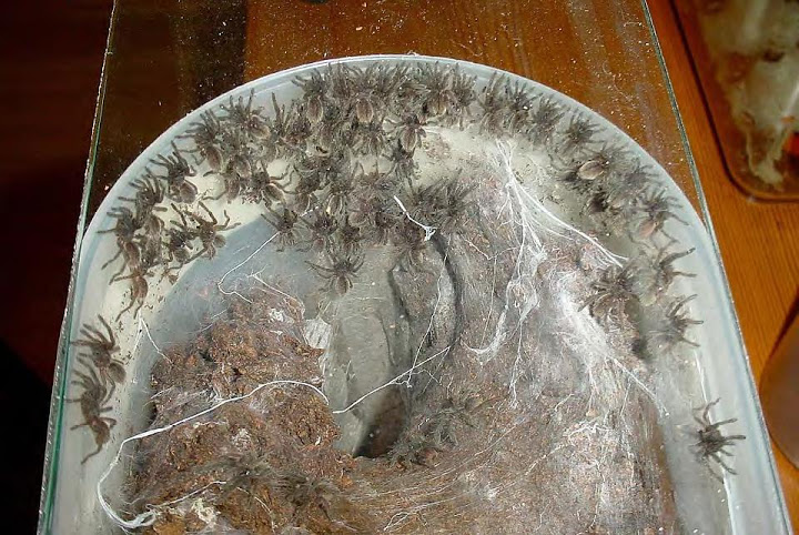 L1, które wyszły z kokonu. Zdjęcie autorstwa Guy Tansley. Photo is copyrighted to The British Tarantula Society.