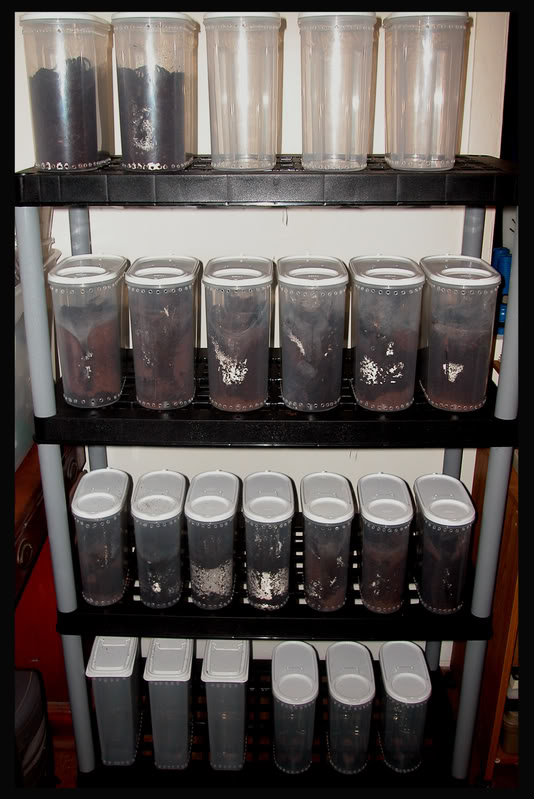 Plastikowe „haplotanki” – tanie i dobre zastępstwo dla szklanych terrariów. Zdjęcie autorstwa Chris Allen „syndicate” z www.arachnoboards.com.