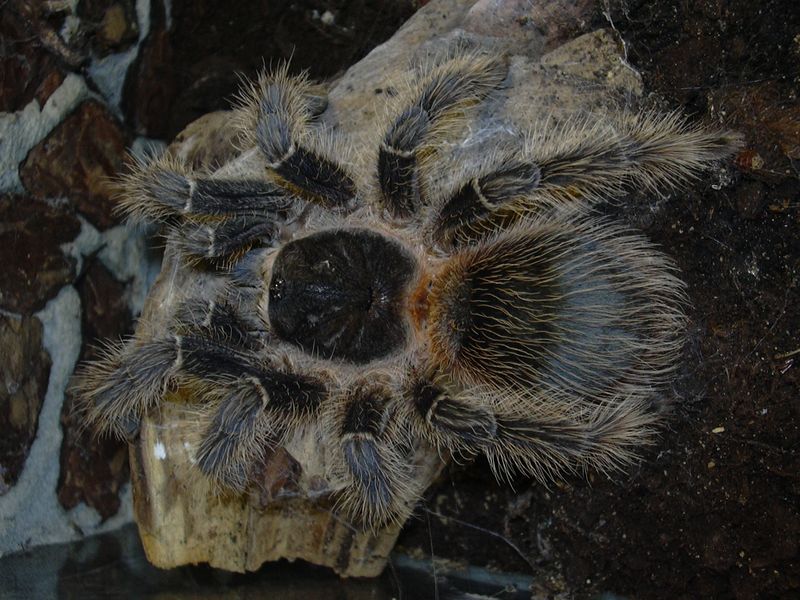Jako podłoża używamy kwaśnego torfu, włókna kokosowego lub ich mieszanki, grubość podłoża powinna wynosić ok. 8-10 cm, gdyż pająki te uwielbiają kopać. Powinniśmy zapewnić kryjówkę, którą można zrobić z łupiny kokosa lub ceramicznej doniczki. Tylną ścianę terrarium możemy wykonać z korka, kory, słomianki lub zaprawy tynkarskiej bądź styropianu pomalowanych farbą wszystko zależy od naszych zdolności i pomysłowości. Jako wystrój wykorzystujemy korzenie, kawałki kory, łupiny orzecha kokosowego wszystko najlepiej odpowiednio zabezpieczone przed wilgocią nietoksycznym lakierem bezbarwnym. Terrariummożemy obsadzić żywymi roślinami, ale najczęściej zostają one zniszczone przez mieszkańca, najlepiej spisują się sztuczne rośliny.