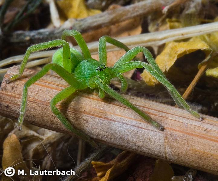 - Micrommata virescens – klasycznej, bez ciemniejszej, grotowej pręgi u samicy