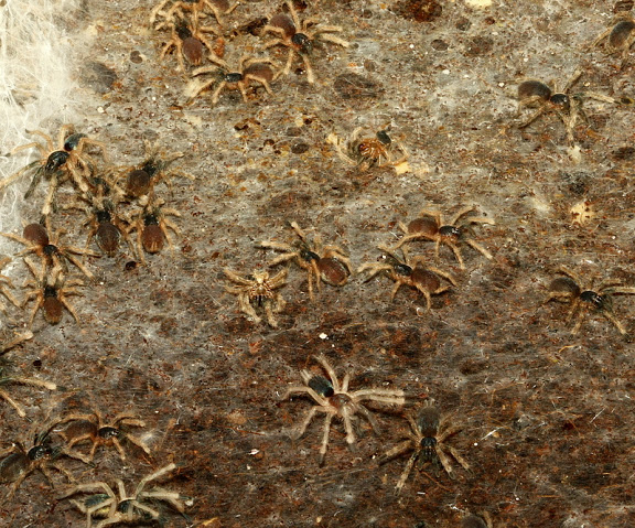 Rozmnażanie gatunku jest stosunkowo bezproblemowe. Dorosła para kopuluje łatwo. Zdarza się, że samica jest agresywna w stosunku do samca, więc należy umożliwić mu szybką ucieczkę. Samica składa kokon bardzo szybko, nawet poniżej miesiąca od kopulacji (a zdarzały się przypadki kilkunastu dni), z którego po niecałym miesiącu wychodzą nimfy, często już NII. Młode linieją na L1 po około tygodniu. Liczba pająków w kokonach jest różna, od kilkudziesięciu (30-50) do ponad 100. Samice często składają drugi kokon, bez linienia i ponownego dopuszczania. Drugi kokon zazwyczaj jest mniej liczny w porównaniu do pierwszego. Młode można zostawić z samicą, będą wspólnie polować. Jeśli zapewnimy odpowiednią ilość pokarmu, to nie powinno dość do kanibalizmu między osobnikami.
