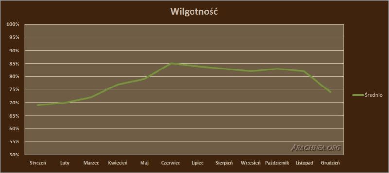 Temperatura w terrarium powinna wynosić 22-28°C za dnia, oraz kilka°C mniej ok. 22°C w nocy. Wilgotność należy utrzymywać na poziomie 75-85%.