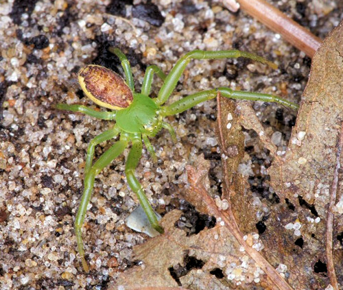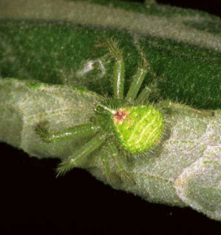Pająki charakteryzują się zielonym głowotułowiem i brązowym odwłokiem. Jak widać, pająk ten jest bardzo mały (5mm). Pająka można odnaleźć w pobliżu lasów.