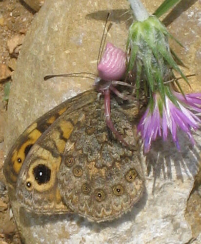 Niezwykły pająk i jedyny gatunek w Europie. Thomisus onustus występuje w południowej Europie. Łatwo go rozpoznać po charakterystycznym kształcie odwłoka.