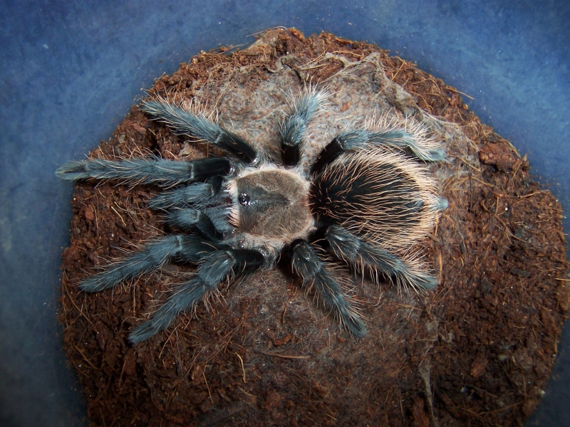 Jako podłoża używamy kwaśnego torfu, włókna kokosowego lub ich mieszanki. Powinniśmy zapewnić pająkowi kryjówkę, którą można zrobić z łupiny kokosa lub doniczki.
