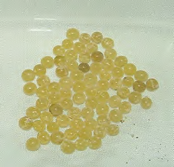 17 lipca 2005, kokon został odebrany do sztucznego inkubatora. Ponad 80 jaj (zdjęcie 8.) zostało usuniętych z kokonu, a następnie umieszczono je w inkubatorze (Gabriel, 2005). Po kilku następnych dniach jajka zaczęły przeistaczać się do formy prelarwalnej, ale nie tylko to zaczęło się rozwijać; pleśń zaczęła pojawiać się na formach prelarwalnych. Na dniach zaczęły umierać prelarwy w wyniku ataku pleśni pomimo tego, że zakażone prelarwy zostały usunięte. W efekcie końcowym żadne z młodych nie przeżyło. Patrząc wstecz na te niepowodzenie i kilka innych ale podobnych, mogę tylko przypuszczać, że ten typ sztucznego inkubatora nie nadaje się dla pewnych gatunków Aphonopelma, Sericopelma i kilku innych gatunków azjatyckich – wszystkich tych, których zawartość kokonów umarła z tego samego powodu. Z perspektywy czasu, sztuczny inkubator Gabriel (2004) mógłby się sprawdzić, gdyby został odrobinę inaczej zaprojektowany, nie zapominając przy tym o zwiększeniu ilości otworów wentylacyjnych.
